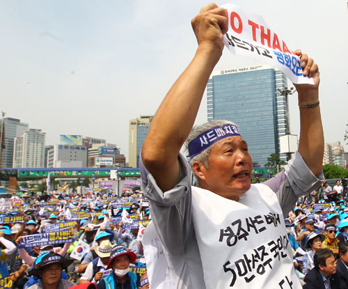 韓國民眾舉行集會反對部署“薩德”系統 。新華社記者 姚琪琳 攝