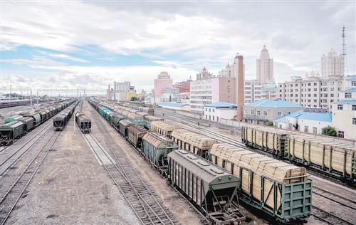 2016年上半年,滿洲里口岸過貨量完成1429萬噸,同比增長1.2%。內蒙古地區與俄國經貿合作水平不斷提升,內蒙古對俄羅斯、蒙古已形成了以滿洲里、二連浩特兩大口岸為支點的沿邊經濟走廊。新華社記者 連 振 攝