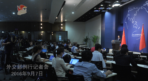 原標題:2016年9月7日外交部發言人華春瑩主持例行記者會
