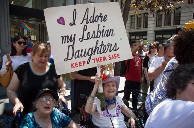 【環(huán)球網(wǎng)綜合報道】據(jù)英國《每日郵報》近日報道,美國紐約市一位92歲高齡的老太太30年來堅持參加“同志驕傲大游行”,每次都舉著“我愛我的同性戀女兒,請保證她們安全”的標(biāo)語。她的兩個女兒在1970年游行開始后出柜,如今大女兒70歲,小女兒68歲。