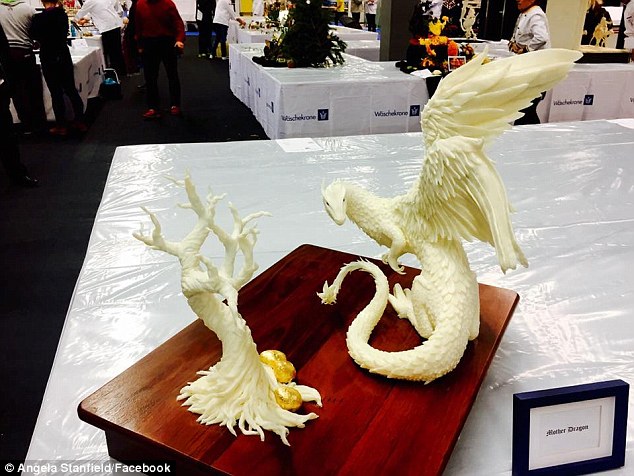 【環(huán)球網(wǎng)綜合報(bào)道】據(jù)英國(guó)《每日郵報(bào)》10月24日?qǐng)?bào)道,來(lái)自澳大利亞珀斯年僅20歲的見習(xí)廚師安杰拉·斯坦菲爾德(Angela Stanfield)用人造奶油制作了重達(dá)28千克的龍雕塑,并憑此在近日于德國(guó)舉辦的IKA奧林匹克世界烹飪大賽中榮獲銅牌。
