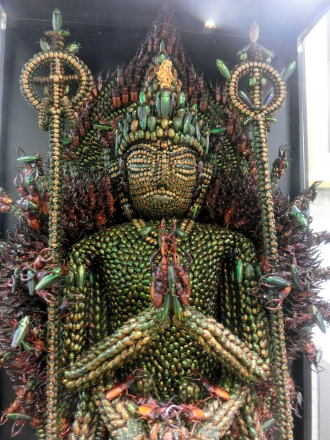 國際在線專稿:據(jù)日本《朝日新聞》10月26日報道,日本群馬縣板倉町的中央公民館展出了一尊由獨角仙、鍬形甲蟲、金龜子和蟬等昆蟲做成的“昆蟲千手觀音像”,吸引了眾多游客前去參觀。