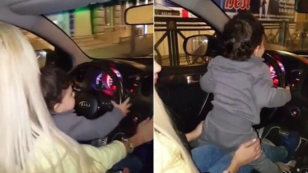【環球網綜合報道】據英國《每日郵報》11月9報道,阿塞拜疆首都巴庫的一名肚皮舞娘開車駛過市中心時,讓初學走路的兒子坐在自己腿上握著方向盤。一段時間后,男童站了起來,開始玩車內后視鏡上掛著的珠子以及車上的收音機。