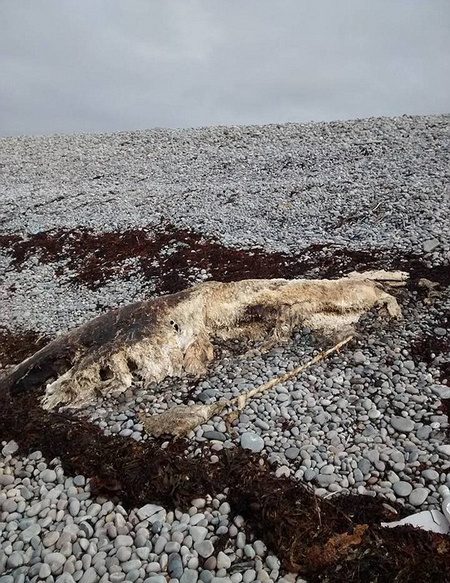 起初,這3具尸體上滿是殘渣碎屑,并且散發著惡臭,因而人們不愿走近查看,從而無法辨認它們。約3個月后,70歲的農場工人科林·弗勞爾(Colin Flower)仔細查看尸體后發現它們竟然是北極熊。他說:“一開始,它們就是一大塊灰色物體,什么也不像。就算獸醫來看了也無法下結論,F在,它們身上的灰色覆蓋物被吹走了,至少我是這么認為的,白色的毛皮顯現了出來!彼硎疚ㄒ挥忻さ暮Q笊锞褪潜睒O熊。