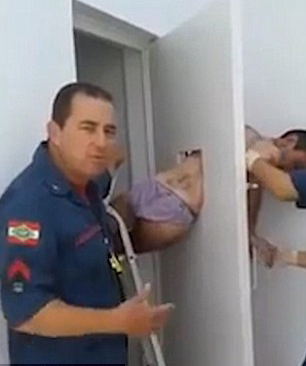 據悉,該男子是因盜竊珠寶而入獄的。在企圖越獄時,他全身只穿了一件內褲,還被卡在監獄門的窗口上。現場的消防員們大費周折,又是涂油,又是關門拉扯,均沒能成功解救出該囚犯,反使其叫苦不迭。