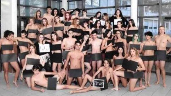 法國一高中日前拍出一張“全裸畢業照”