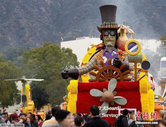 中新網(wǎng)1月5日電 據(jù)外媒報(bào)道,美國(guó)加州的帕薩迪納市1日迎來(lái)第128屆玫瑰花車大游行(Rose Parade),這一年度盛事可謂百“花”爭(zhēng)奇斗艷,各色花車造型別出心裁,向全世界呈現(xiàn)一次美的饗宴。