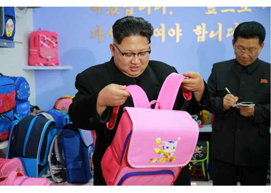 朝鮮最高領導人金正恩視察平壤書包工廠