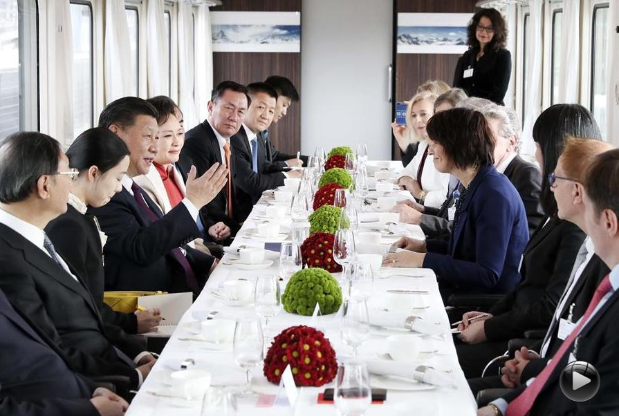 當(dāng)?shù)貢r間1月15日,國家主席習(xí)近平在瑞士聯(lián)邦主席洛伊特哈德陪同下,乘坐瑞士政府專列自蘇黎世前往瑞士首都伯爾尼。在專列行進(jìn)過程中,習(xí)近平和夫人彭麗媛受洛伊特哈德主席夫婦邀請,在輕松愉快的氛圍中品茶暢談。