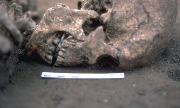 英國考古學家發現一具令人驚駭的男性尸骨,他的舌頭被人割下后再塞進石頭。(英國《衛報》)