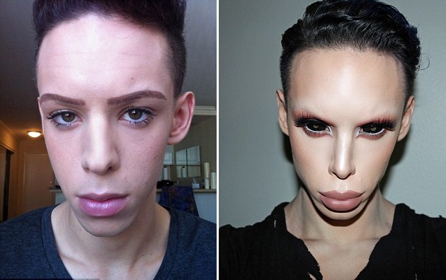 他從17歲開始豐唇,之后又做了兩次隆鼻和墊額頭等手術。作為一個兼職模特,他通常戴著黑色的隱形眼鏡,并配以不同尋常的指甲顏色和發(fā)色。文尼說:“我希望自己的外在能和我自己內心感覺是一致的,我想成為混合體,既不是男性也不是女性。”