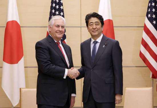 原標題:美國務卿蒂勒森會見安倍晉三 強調朝鮮威脅