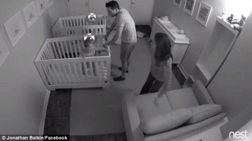 這兩個小家伙的所有行為都沒有逃過監(jiān)控的“法眼”。父母第二天早上查看監(jiān)控后被逗樂了,著實佩服這兩個小家伙的精力,于是就做成了一段延時視頻,上傳至網絡。視頻中,一個小家伙先靈活地翻出嬰兒床,開始搬墊子。隨后另一個小家伙也躺不住了,開始活動。他們把好幾個墊子堆在地上,“大干了一場”,似乎該歇歇了,于是就坐在沙發(fā)上,開始“夜聊”。不過,聊了沒多久,他們又開始“工作”了。兩人把房間里所有的墊子都搬了過來堆好,然后就開始做即興體操表演。