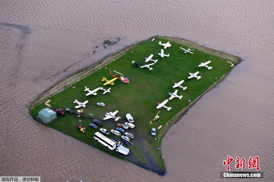 當地時間4月1日,熱帶氣旋“黛比”持續襲擊澳大利亞,在新南威爾士北部城市利斯莫爾,洪水淹沒了建筑和街道。圖為飛機停放的高地在洪水中猶如孤島。