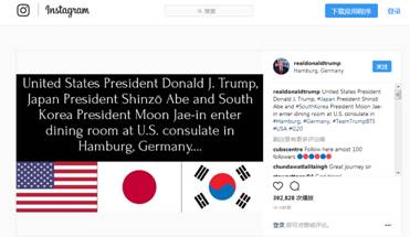 【環球網報道 記者 查希】在德國漢堡出席G20峰會的美日韓三國首腦6號舉行會談。為此,美國總統特朗普特意在主流社交媒體上發布了相關信息。他在官方推特稱“和日本總統安倍晉三、韓國總統文在寅的三邊會談及晚餐很棒。”
