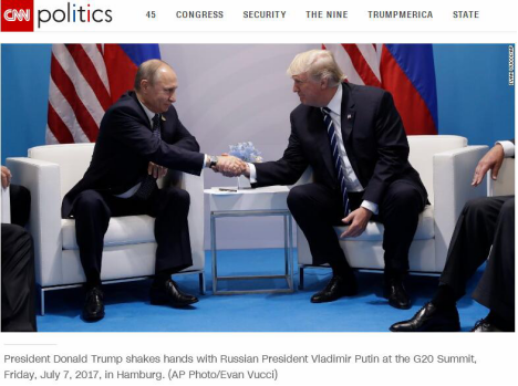 據(jù)CNN報(bào)道,在此次閉門會(huì)晤中,除了兩位領(lǐng)導(dǎo)人外,只有美國國務(wù)卿蒂勒森、俄羅斯外長(zhǎng)拉夫羅夫及雙方翻譯在場(chǎng)。兩人交談了兩個(gè)多小時(shí),涉及到敘利亞、烏克蘭等地區(qū)局勢(shì)以及網(wǎng)絡(luò)安全等問題,并宣布達(dá)成敘利亞西南部停火協(xié)議 。