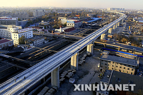 11月10日在天津拍攝的建設中的京津城際軌道。新華社發(謝津生 攝)