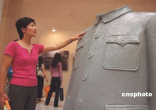 中山市相關單位正在搜集中山裝的歷史資料,如果資料能夠齊全,中山裝將努力申報為國家非物質文化遺產保護項目。而在下個月,全國首家“中山裝文化展示中心”也將于中山市開業。圖為觀眾在欣賞一件以中山裝為題材創作的雕塑“衣缽”。 中新社發 廖文靜 攝