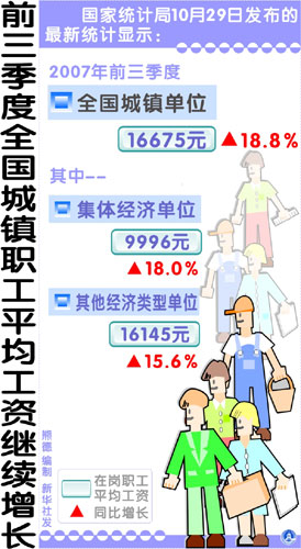 1-9月城鎮在崗職工人均工資16675元。(資料圖片)