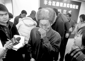 在搖號現場,家住大紅門的李文才老人不住地擦眼淚,“做夢都沒有想到我能搬進兩居室的樓房里。”李文才告訴記者,他已經64歲了,愛人長年有病,兩個孩子都在上學,大女兒才上初三,一家四口靠低保金生活。由于沒有房子,一家人一直借住在岳父家只有18平方米的房子里,每天睡覺都要搭臨時鋪。“這次搬入新房子后,每月只需要交80多塊錢的房租,這個我能交得起,我還可以為孩子們添一個新書桌。”說到這兒,李文才又流出了眼淚,“回去告訴老伴兒去,明天要帶她一起去挑房子。”(記者 王晴)