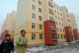 1月2日,兩位小朋友從烏魯木齊市沙依巴克區一處新建的經濟適用房旁走過。新華社記者:趙戈 攝