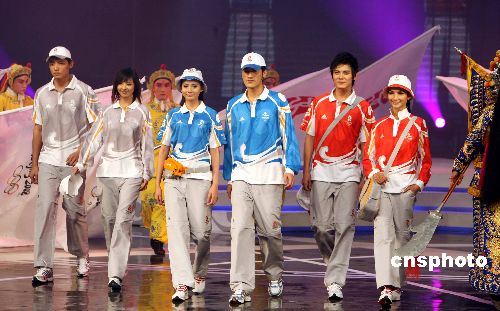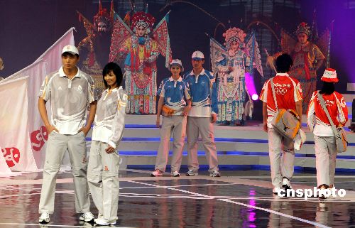 一月二十日,北京2008年奧運倒計時兩百天,北京奧運會制服正式發(fā)布。制服包括志愿者服裝、工作人員服裝、技術官員制服。 中新社發(fā) 任海霞 攝