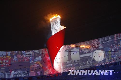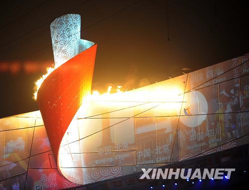 8月8日,第29屆夏季奧林匹克運(yùn)動(dòng)會(huì)在中國(guó)國(guó)家體育場(chǎng)隆重開幕。這是主火炬塔被點(diǎn)燃。新華社記者劉大偉攝