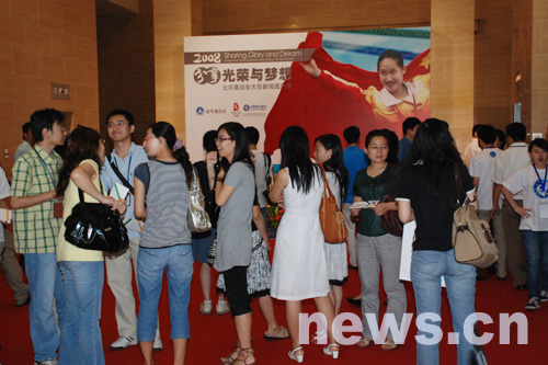 “分享光榮與夢想”——2008北京奧運會大型新聞圖片展5日上午在中國美術館開幕。圖為開幕式前現場已經涌入大批觀眾。 新華網 張泳 攝