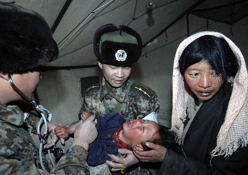 10月7日,西藏軍區(qū)總醫(yī)院的醫(yī)務(wù)人員在給一名藏族孩子檢查身體。10月6日,拉薩市當(dāng)雄縣發(fā)生6.6級(jí)地震。地震發(fā)生之后,西藏各部門迅速投入到抗震救災(zāi)中。目前已有700多名救援人員抵達(dá)災(zāi)區(qū)參加救援,救援工作順利進(jìn)行。受災(zāi)群眾目前已得到妥善安置。新華社記者 覺果 攝