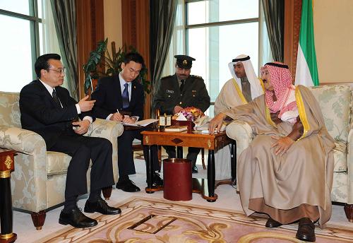 12月28日,科威特埃米爾(國家元首)艾哈邁德·薩巴赫在首都科威特城會見中國國務院副總理李克強。新華社記者 饒愛民 攝