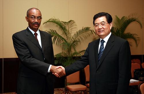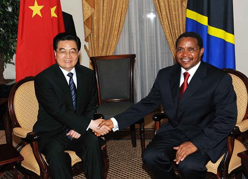 胡錦濤在達累斯薩拉姆會見桑給巴爾總統(tǒng)卡魯姆