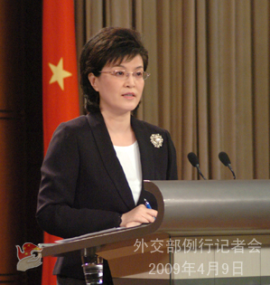 2009年4月9日,外交部發(fā)言人姜瑜舉行例行記者會(huì),主要就博鰲論壇2009年年會(huì)、朝鮮發(fā)射衛(wèi)星、伊核問題等答記者問。