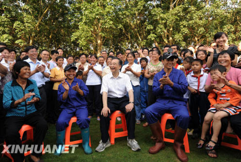 座談結束時,溫家寶親熱地招呼大家,“來,咱們靠近一些,一起照張像。”快門聲響,留下了總理與農場工人們在橡膠林旁美好的瞬間。