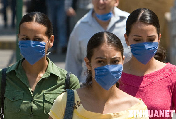 4月26日,幾名墨西哥城市民戴著口罩走在市中心的路上。當(dāng)日,墨西哥城市長(zhǎng)馬賽洛·埃布拉德宣布,該市在最近24小時(shí)內(nèi)有5名豬流感疑似患者死亡,致使首都的豬流感疑似患者死亡總?cè)藬?shù)升至15人。墨西哥城市政府臨時(shí)決定追加發(fā)放100萬(wàn)只免費(fèi)口罩。新華社發(fā)(戴維攝)