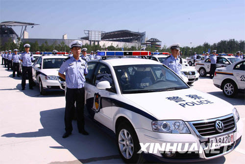 資料圖片:北京交警在奧體中心南門準備出發。 新華社記者 陳建力 攝