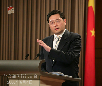 2009年6月4日,外交部發言人秦剛舉行例行記者會。答問如下: