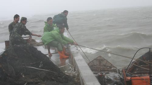 6月21日,福建省漳州市邊防支隊(duì)官兵幫助漁民加固漁船,防御熱帶風(fēng)暴“蓮花”。6月21日上午,中央氣象臺(tái)發(fā)布了臺(tái)風(fēng)橙色警報(bào)。今年第三號(hào)強(qiáng)熱帶風(fēng)暴“蓮花”于當(dāng)天上午減弱為熱帶風(fēng)暴,以每小時(shí)10公里的速度緩慢逼近福建南部的廈門、漳州、泉州等地。目前閩南漁船已全部進(jìn)港避風(fēng),各地防臺(tái)風(fēng)工作已全面展開。新華社發(fā)(徐國(guó)慶 攝)