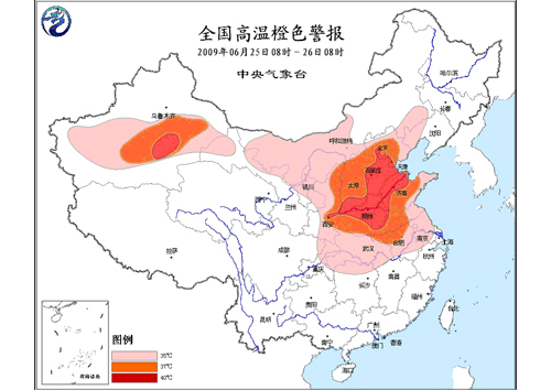 中央氣象臺25日早晨六點鐘繼續發布高溫橙色警報: