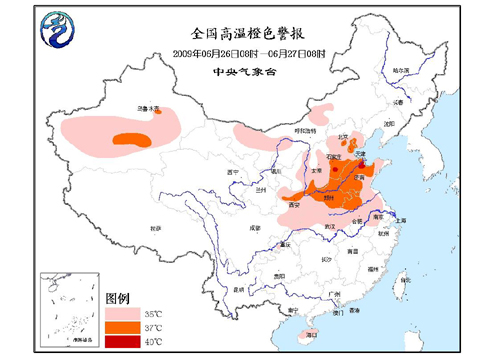 預計,今天白天,華北大部、黃淮、江淮、江漢、陜西中部和東部、四川盆地東北部、內蒙古中西部、新疆南疆盆地等地有35℃以上的高溫天氣,其中,陜西中部、山西西南部、河北南部、京津地區、河南中東部、山東大部、安徽北部和南疆盆地等地的部分地區最高氣溫可達37~39℃,河北南部、山東北部局部地區氣溫可達40℃。