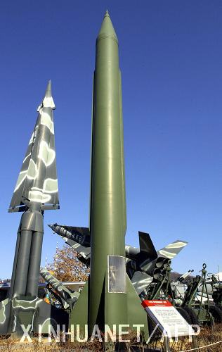 韓國聯合通訊社7月4日報道,朝鮮當天中午在東海岸元山地區向海上發射了第四枚導彈。圖為在韓國首都首爾展示的飛毛腿導彈模型(攝于2002年12月11日)。 新華社/法新