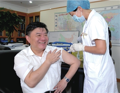 衛(wèi)生部長(zhǎng)陳竺系試驗(yàn)接種第一人