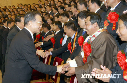 8月14日,第七屆全國“人民滿意的公務員”和“人民滿意的公務員集體”表彰大會在北京舉行。會前,中共中央政治局常委、國務院總理溫家寶,中共中央政治局常委李長春,中共中央政治局常委、中央書記處書記、國家副主席習近平會見與會部分代表。新華社記者姚大偉攝