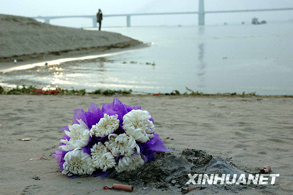 10月26日,江灘邊擺放的鮮花寄托著人們對年輕英雄的懷念。