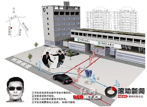 據警方發布的消息稱,犯罪嫌疑人為男性,40歲左右,身高約1.70米,中等體態,較結實,皮膚較黑,行走時腰桿挺直,作案時利用墨鏡、帽子作偽裝,穿深色衣服,深色褲子,著裝不講究。請廣大群眾結合公安機關公布的視頻錄像和模擬畫像進行辨認,如有知情者,請速撥打“110”電話或與長沙市公安局刑偵支隊聯系,聯系人洪警官:0731-85010202、13574849110。對提供重要線索抓獲犯罪嫌疑人或直接抓獲犯罪嫌疑人的,公安機關將獎勵人民幣20萬元。