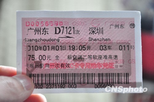 2010年1月22日消息,今年春運(yùn)鐵路部門在廣鐵集團(tuán)、成都鐵路局部分車站試行火車票實名制,在深圳工作的孟軍寧成為預(yù)訂中國首張實名制火車票的旅客。 中新社發(fā) 呂雪良 攝