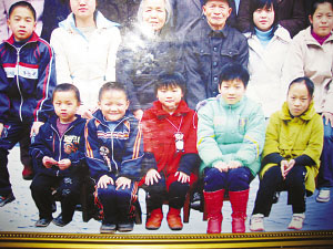 全家福經(jīng)過精心裝裱,5個孩子蹲在最前排,笑靨如花。