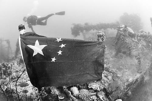 據(jù)共同社報(bào)道,這面中國(guó)五星紅旗寬約1米,被用鐵絲和白色束帶綁在被珊瑚覆蓋的船尾炮座周圍、貌似原為柵欄的柱子上。1944年,“石廊”號(hào)在太平洋戰(zhàn)爭(zhēng)中遭美軍襲擊,在帕勞海域沉沒(méi),多數(shù)船員也隨之葬身海底。該報(bào)道說(shuō),這里已經(jīng)成為很有人氣的潛水地點(diǎn)。一同潛水的當(dāng)?shù)厝占疂撍驅(qū)дf(shuō),這可能是最近一周內(nèi)綁上去的。共同社稱,可能是中國(guó)人掛的。近年到帕勞旅游的中國(guó)人激增。