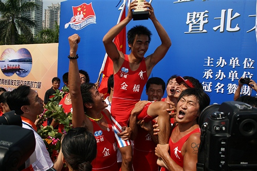 以絕對優(yōu)勢再次擊敗清華大學(xué)賽艇隊 北大隊員們激動不已