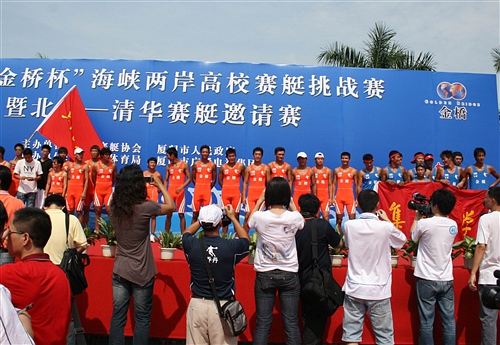 中國臺灣網(wǎng)9月1日廈門消息 2007“金橋杯”海峽兩岸高校賽艇挑戰(zhàn)賽暨北大——清華賽艇邀請賽今天在廈門舉行,廣州華南師范大學(xué)賽艇隊以8分15秒的成績?nèi)〉霉谲姡状螀①惖呐_灣輔仁大學(xué)隊也取得第四名的優(yōu)異成績。而在已有8年歷史的北大——清華賽艇邀請賽中,北大再次擊敗清華。賽后,興奮的北大隊員歡呼雀躍,他們成了賽場的絕對焦點(diǎn)。