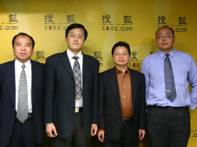 2005年10月24日,中國臺灣網與搜狐網合作,對《臺灣同胞抗日斗爭展覽》的三位撰稿人進行專訪。圖中從左到右分別為:中國社科院臺灣史研究中心褚靜濤先生,臺灣史研究專家、臺盟中央宣傳部副部長、臺海出版社社長安然先生,全國臺聯聯絡部部長、前全國臺聯研究室副主任、全國臺灣研究會理事楊毅周教授,中國臺灣網副總編輯吳彤先生